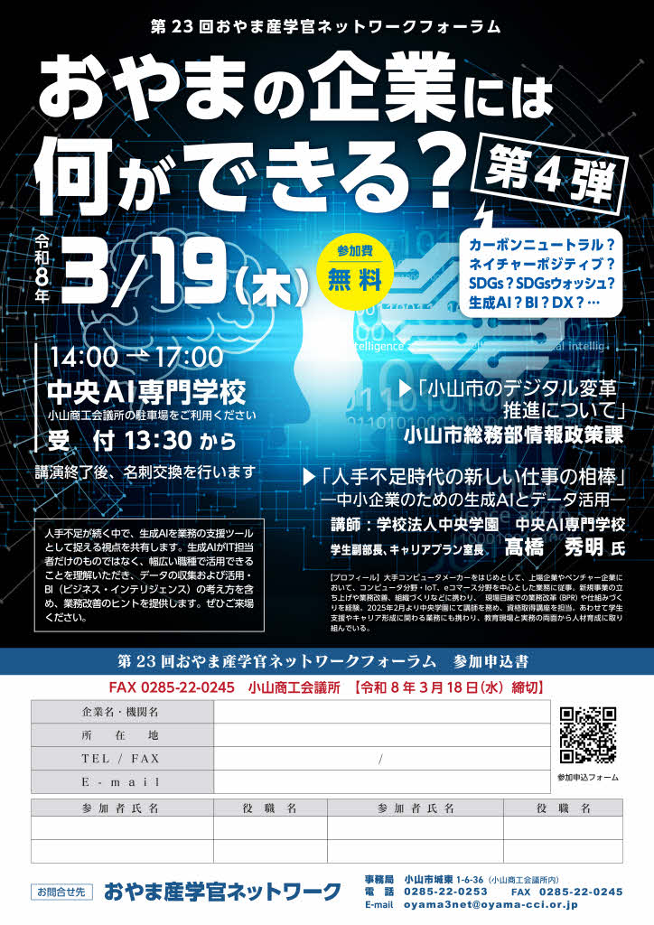 おやま産ネットフォーラム第4弾ちらし(中央AI専門学校)